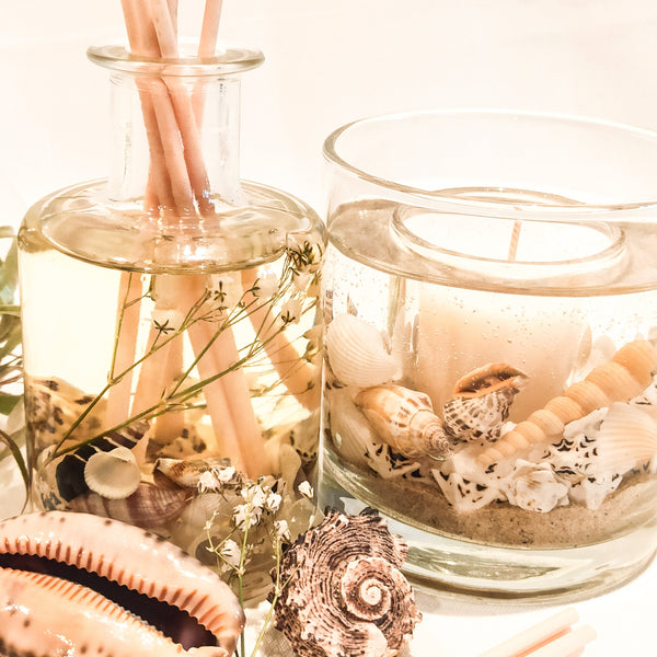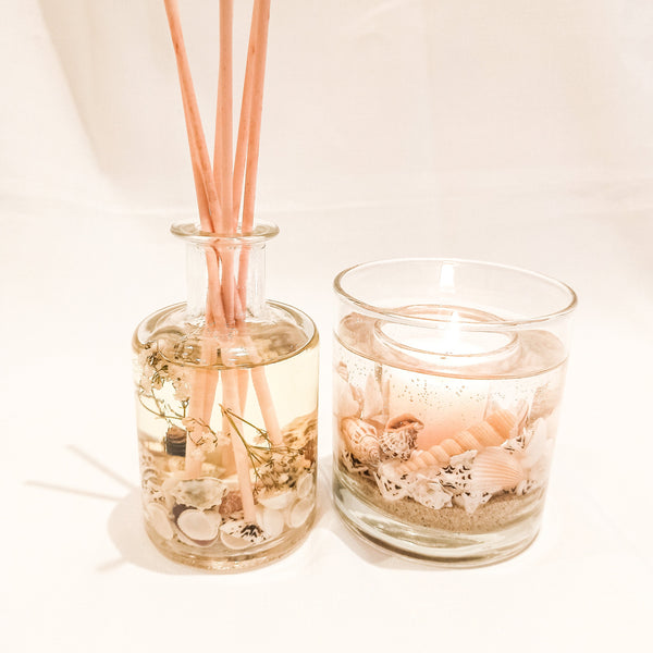 Each fragrance set includes a soy and gel wax tumbler with soy wax refill and a 200ml apothecary bottle luxury reed diffuser with six natural coloured reeds.